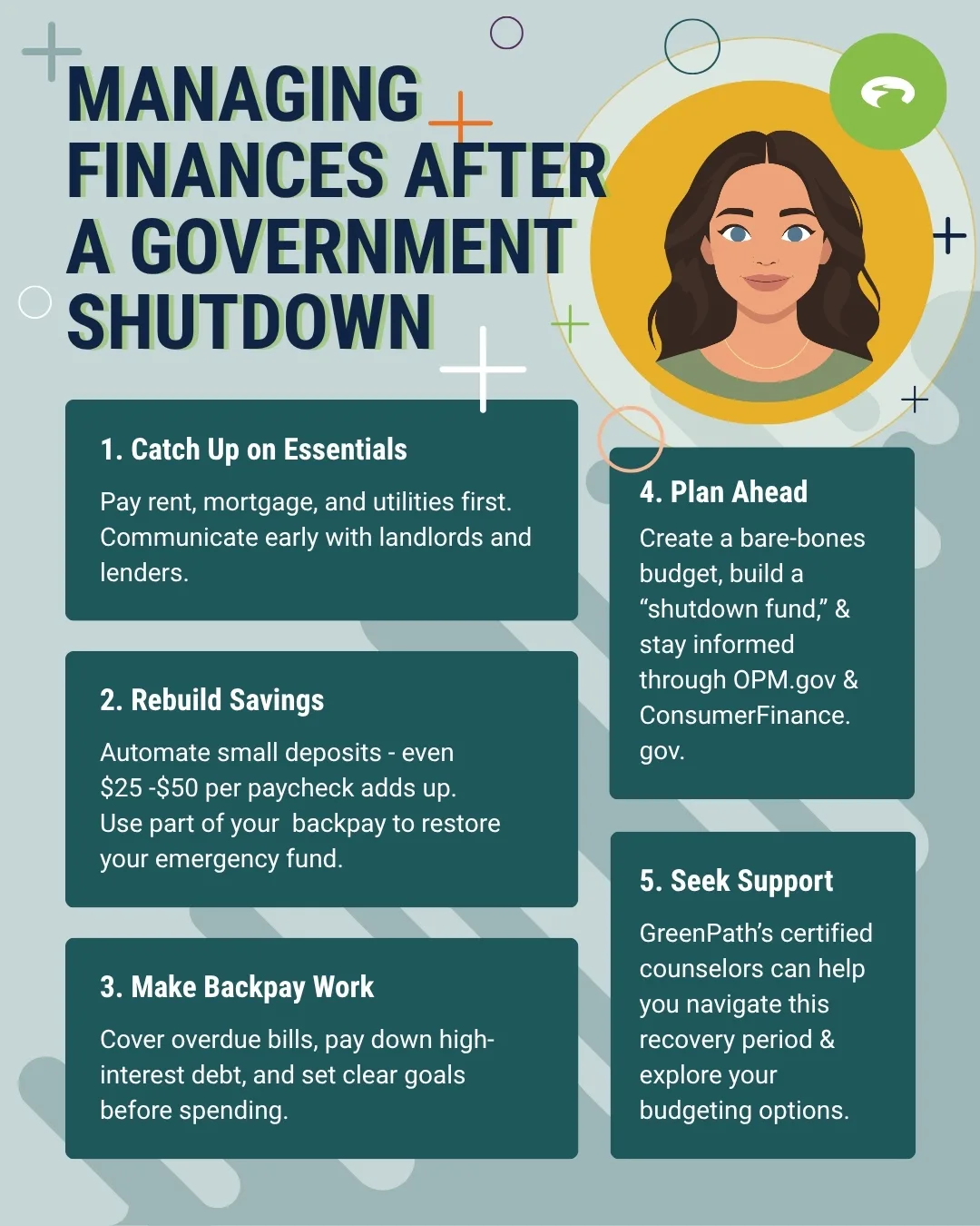Recovering from a government shutdown—or any financial disruption—takes time, patience, and planning. GreenPath offers free, confidential counseling with NFCC-certified financial counselors who can: